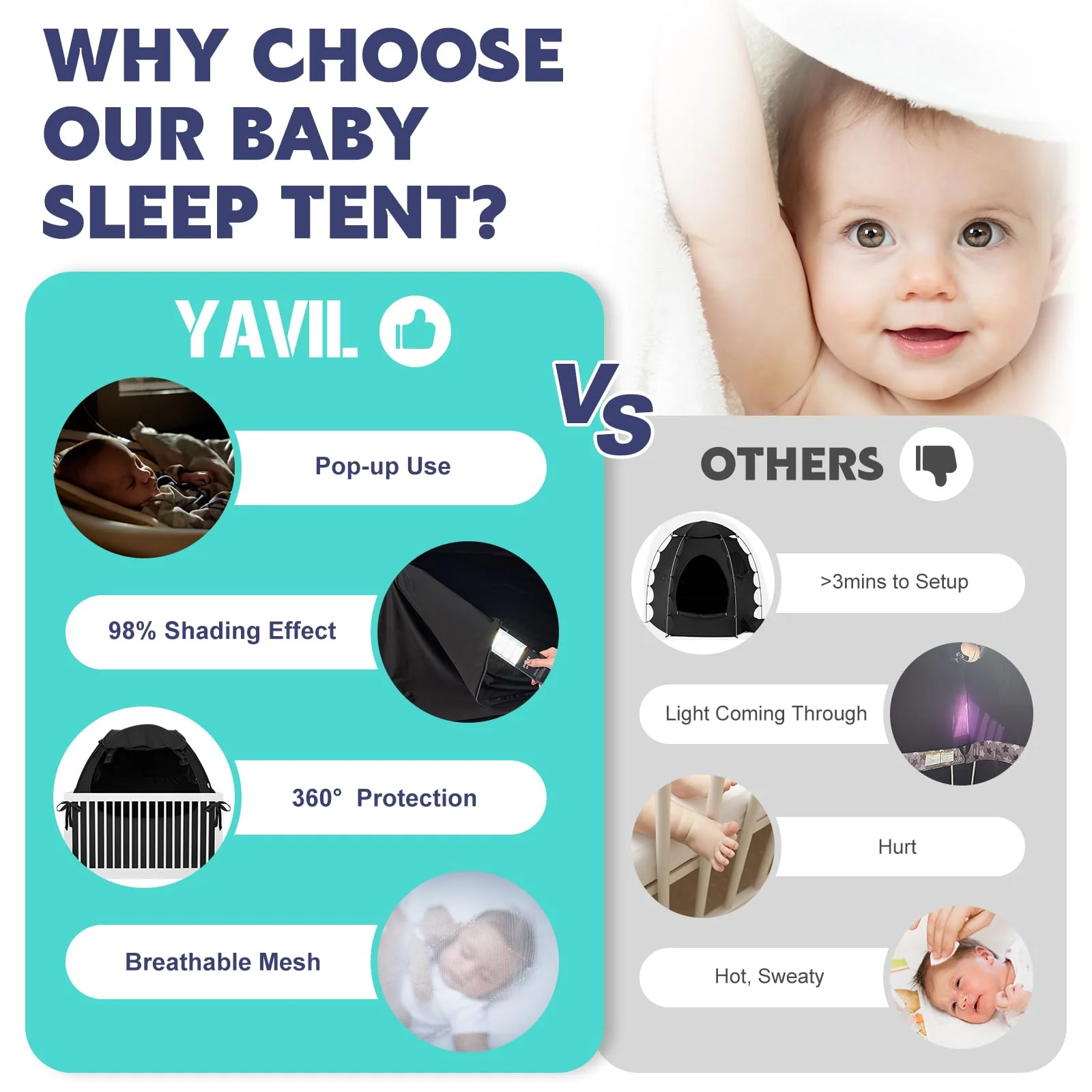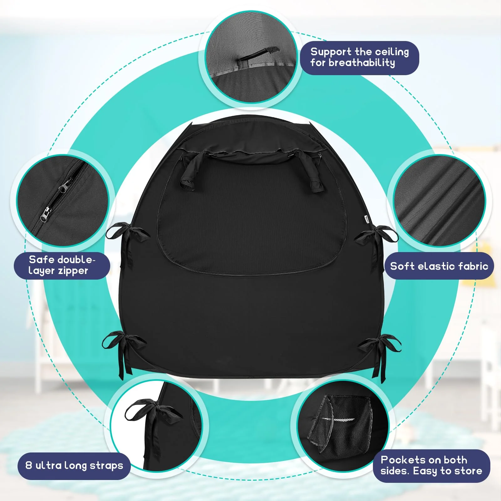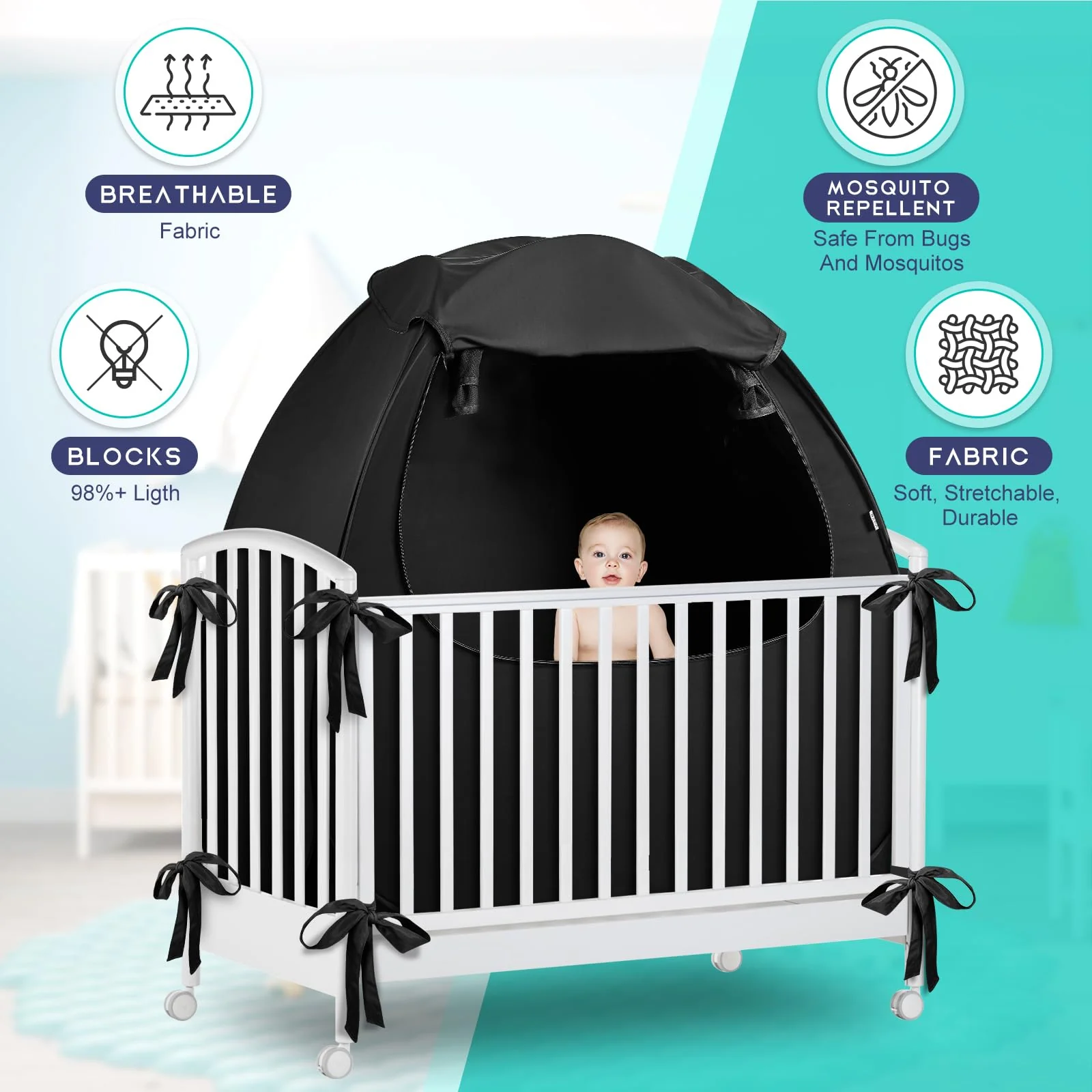Tienda de campaña para cuna portátil para bebé, cubierta opaca Pack N Play